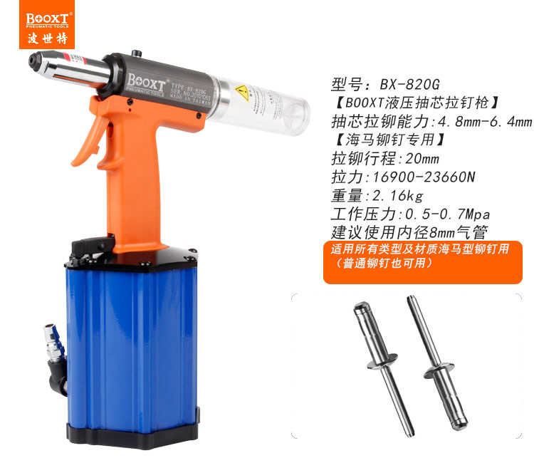東莞市強勁五金工具有限公司提供臺灣BOOXT波世特品牌氣動工具,氣動海馬鉚釘槍BX-820G廠家直銷,首件享特價。咨詢熱線:4008301980