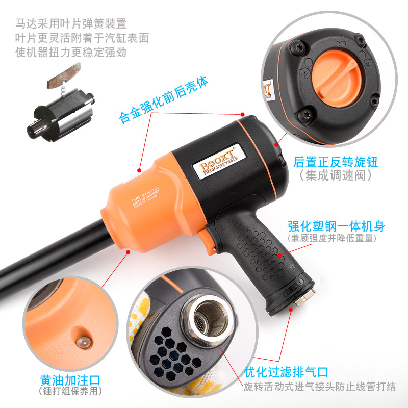 加長(zhǎng)軸風(fēng)動(dòng)扳手特點(diǎn):(塑鋼外殼,強(qiáng)度高重量輕,扭力大)