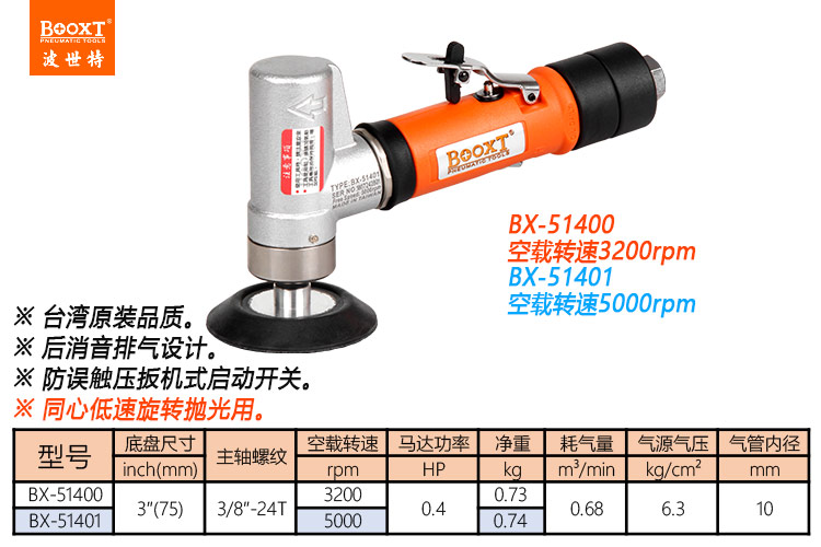 東莞強勁五金工具有限公司提供臺灣BOOXT波世特氣動工具,氣動拋光機BX-51400廠家直銷,首件享特價。咨詢熱線:4008301980