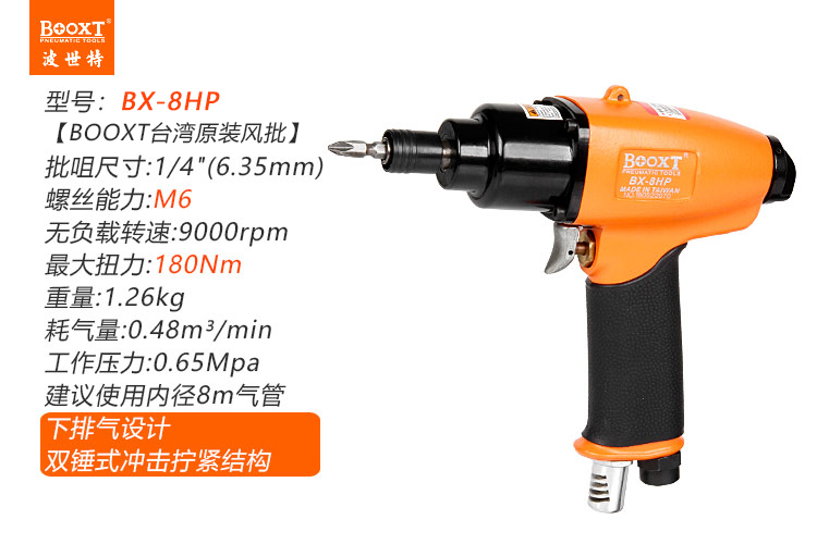 東莞市強(qiáng)勁五金工具有限公司提供臺(tái)灣BOOXT波世特品牌氣動(dòng)工具,氣動(dòng)螺絲槍BX-8HP廠(chǎng)家直銷(xiāo),首件享特價(jià)。咨詢(xún)熱線(xiàn):4008301980