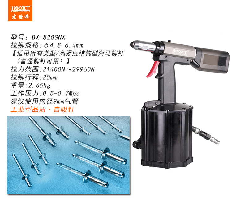 東莞市強勁五金工具有限公司提供臺灣BOOXT波世特品牌氣動工具,自吸式氣動海馬鉚釘槍BX-820GNX廠家直銷,首件享特價。咨詢熱線:4008301980
