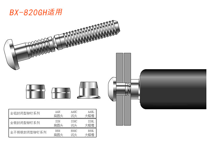 4.品種齊全,適合不同規(guī)格,不同強度的鉚釘。