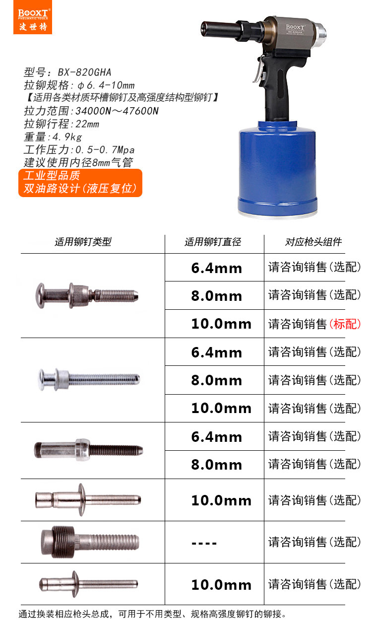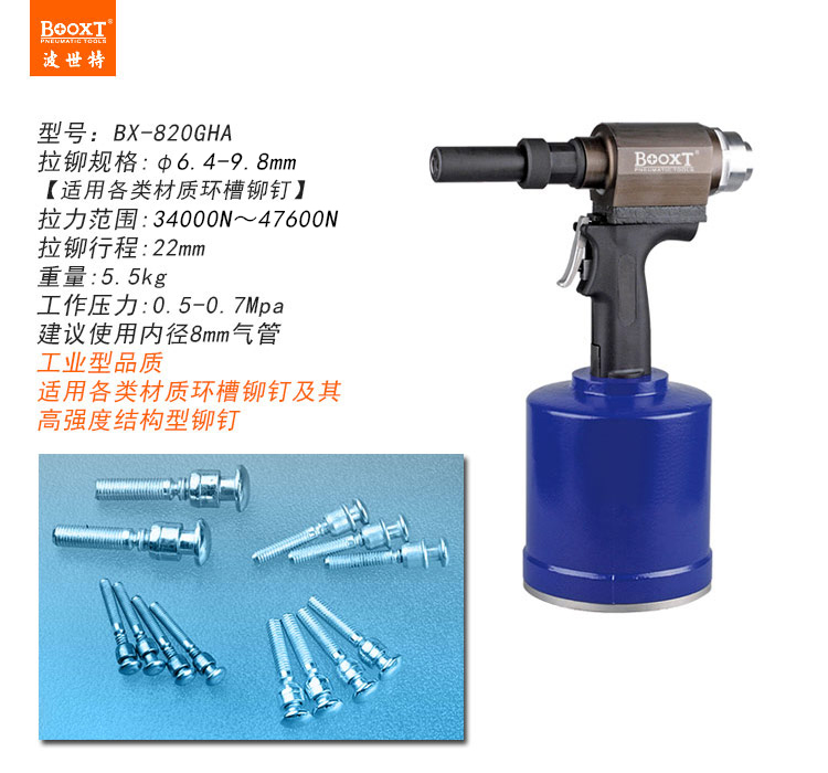 東莞市強勁五金工具有限公司提供臺灣BOOXT波世特品牌氣動工具,氣動環(huán)槽鉚釘槍BX-820GHA廠家直銷,首件享特價。咨詢熱線:4008301980
