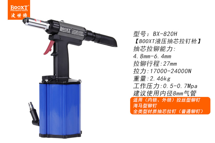 東莞市強勁五金工具有限公司提供臺灣BOOXT波世特品牌氣動工具,海馬拉絲氣動拉鉚槍BX-820H廠家直銷,首件享特價。咨詢熱線:4008301980