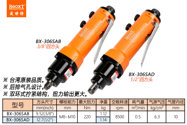 東莞市強勁五金工具有限公司提供臺灣BOOXT波世特品牌氣動工具,直柄小風炮BX-306SAD廠家直銷,首件享特價。咨詢熱線:4008301980