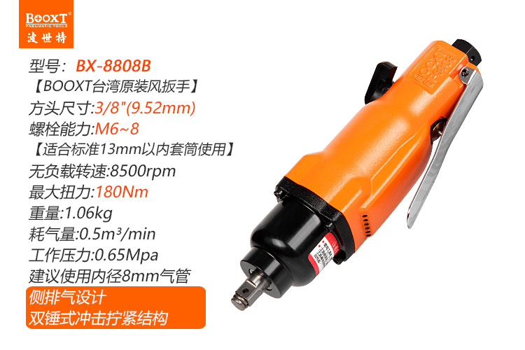 東莞市強(qiáng)勁五金工具有限公司提供臺(tái)灣BOOXT波世特品牌氣動(dòng)工具,直式風(fēng)動(dòng)扳手BT-8808B廠家直銷,首件享特價(jià)。咨詢熱線:4008301980