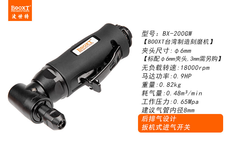 東莞市強(qiáng)勁五金工具有限公司提供臺(tái)灣BOOXT波世特品牌氣動(dòng)工具,彎頭風(fēng)磨機(jī)BX-200GW廠家直銷,首件享特價(jià)。咨詢熱線:4008301980