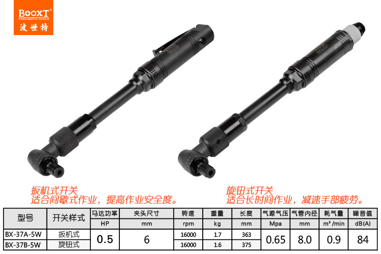 東莞市強勁五金工具有限公司提供臺灣BOOXT波世特品牌氣動工具,彎頭氣動刻磨機BX-37B-5W廠家直銷,首件享特價。咨詢熱線:4008301980