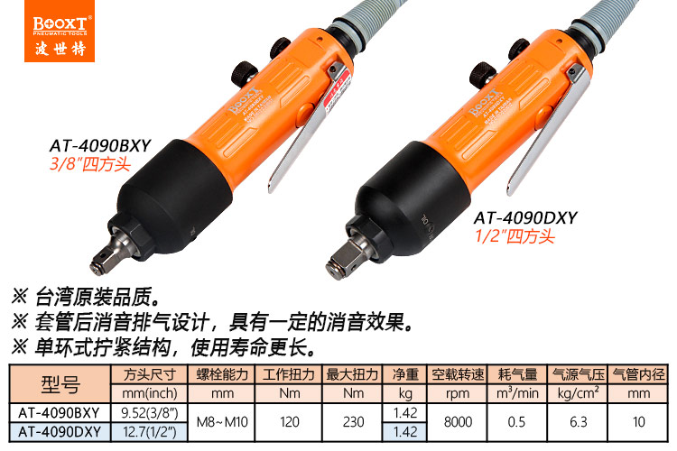 東莞市強勁五金工具有限公司提供臺灣BOOXT波世特品牌氣動工具,直柄氣動扳手AT-4090BXY廠家直銷,首件享特價。咨詢熱線:4008301980