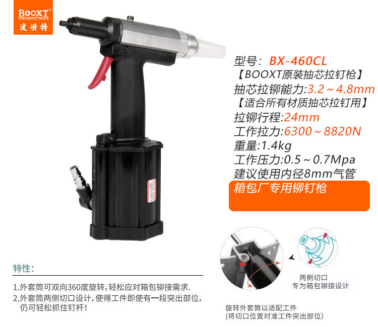 東莞市強(qiáng)勁五金工具有限公司提供臺(tái)灣BOOXT波世特品牌氣動(dòng)工具,氣動(dòng)拉鉚釘槍BX-460CL廠家直銷,首件享特價(jià)。咨詢熱線:4008301980