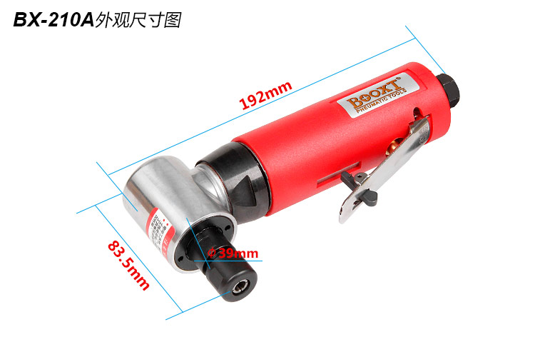 直角氣動打磨機特點:(直角彎頭設(shè)計,更適合狹窄、深孔、細孔、偏角空間作業(yè))