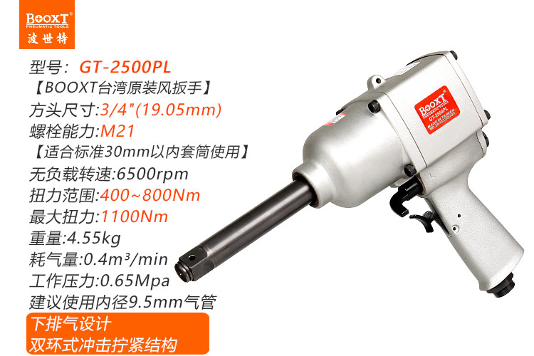 東莞市強(qiáng)勁五金工具有限公司提供臺(tái)灣BOOXT波世特品牌氣動(dòng)工具,工業(yè)級(jí)中風(fēng)炮GT-2500P廠家直銷,首件享特價(jià)。咨詢熱線:4008301980