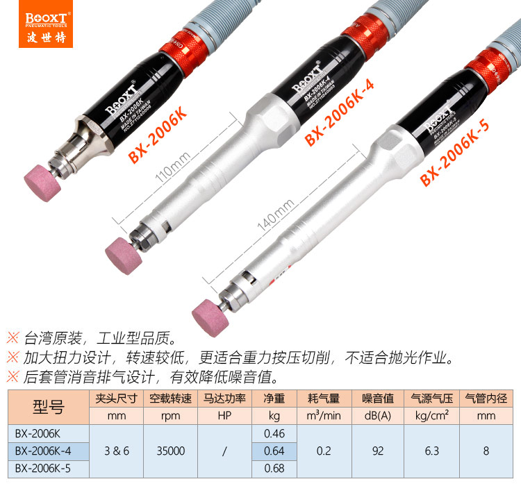 東莞市強(qiáng)勁五金工具有限公司提供臺(tái)灣BOOXT波世特品牌氣動(dòng)工具,大扭力風(fēng)磨筆BX-2006K廠家直銷,首件享特價(jià)。咨詢熱線:4008301980