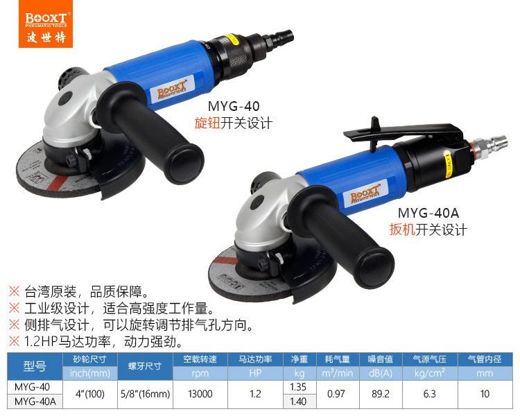 東莞市強(qiáng)勁五金工具有限公司提供臺灣BOOXT波世特品牌氣動工具,工業(yè)級風(fēng)動角磨機(jī)MYG-40A廠家直銷,首件享特價。咨詢熱線:4008301980