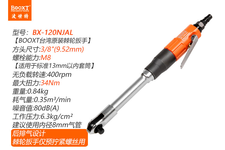 東莞市強(qiáng)勁五金工具有限公司提供臺(tái)灣BOOXT波世特品牌氣動(dòng)工具,加長(zhǎng)氣動(dòng)棘輪扳手BX-120NJAL廠家直銷,首件享特價(jià)。咨詢熱線:4008301980