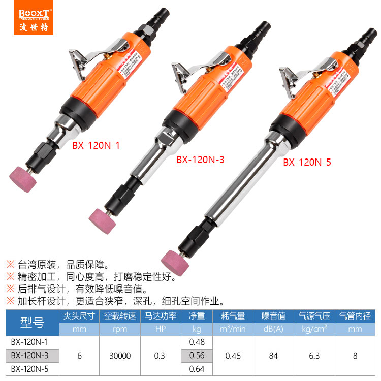 東莞市強(qiáng)勁五金工具有限公司提供臺灣BOOXT波世特品牌氣動工具,加長氣動打磨機(jī)BX-120N-1廠家直銷,首件享特價。咨詢熱線:4008301980